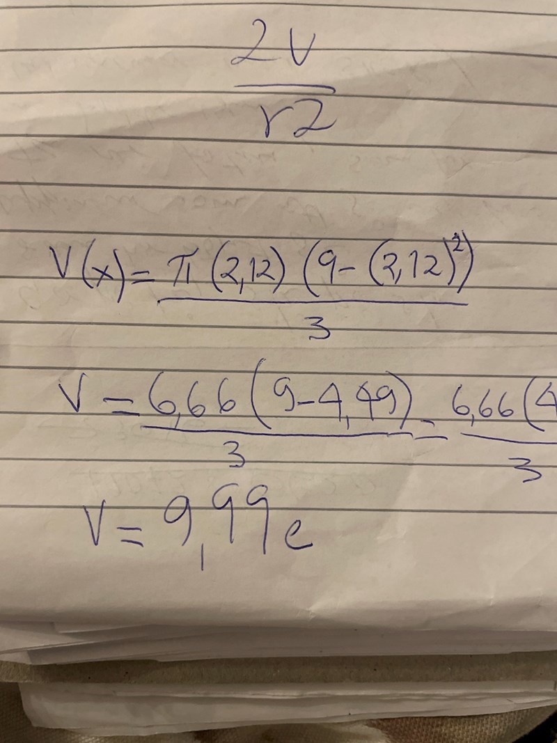 ska V’(2)= pi/3* (18*2-4(2)^3= pi/3* (4)= 4,19