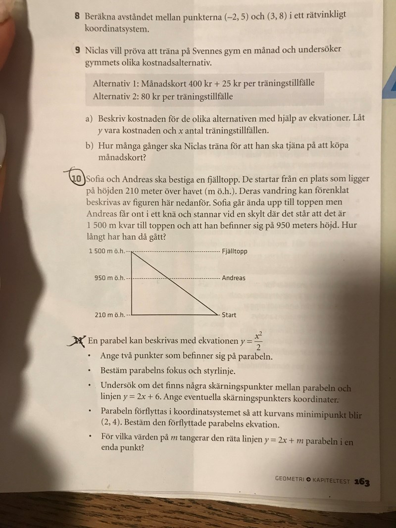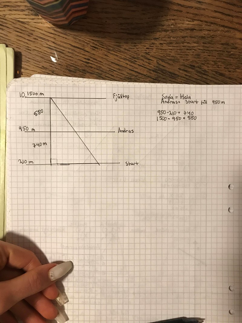 Andreas har 1500 m kvar till toppen. Det är längs hypotenusan.