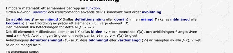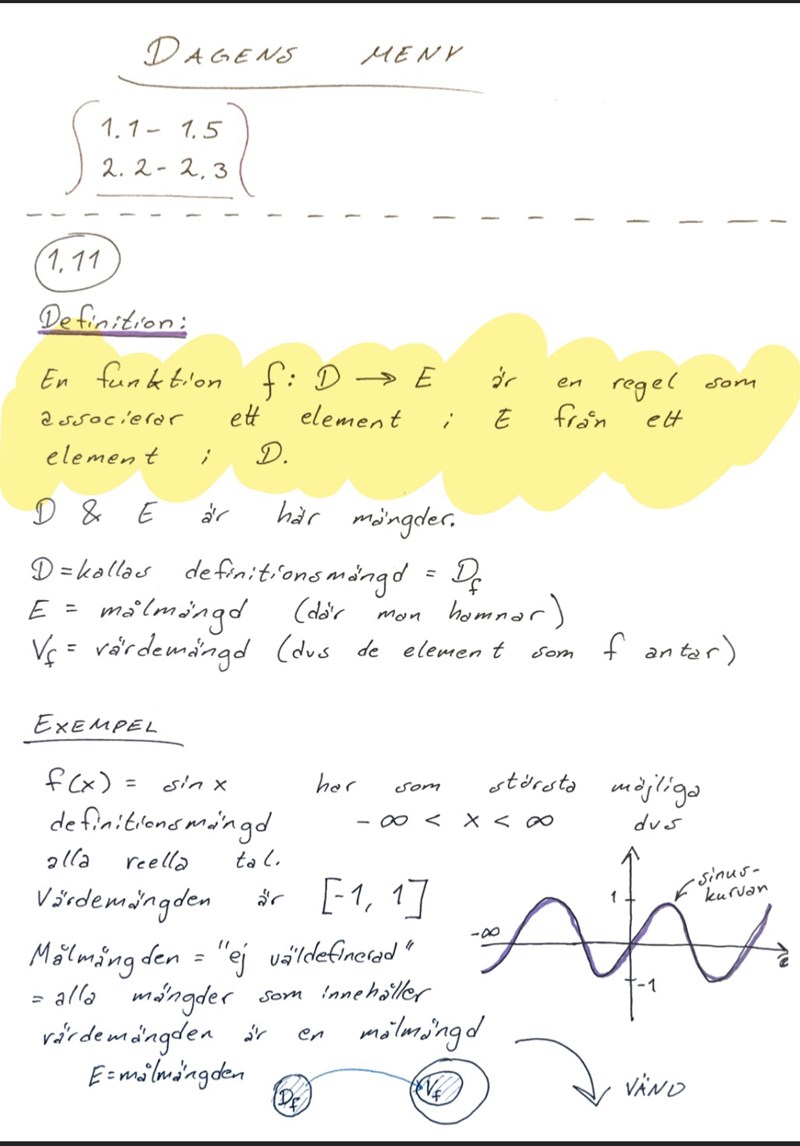 I exemplet med sinusfunktionen borde man ha använt symbolen f:R—>B, och angivit ngn mängd B som omfattar [-1,1] tycker jag.