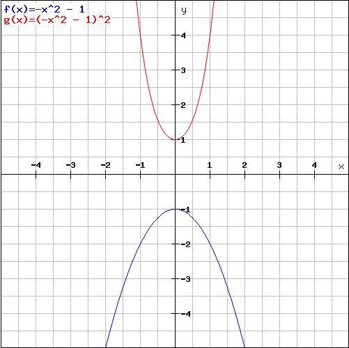 Jag hade skrivit svar till Yngve också men kunde inte posta den. Men det var i stort sätt att jag förstådd fel första gång. Och visst funktioner -x^2-1 och ( -x^2-1)^2 har samma extrempunkt (men speglade) bara för vi har -1? Annars skulle det ser ut helt olika? Så i andra ord en andragradsfunktion med till ex x^2+7 och (x^2+7)^2 har ingenting gemmensamt?