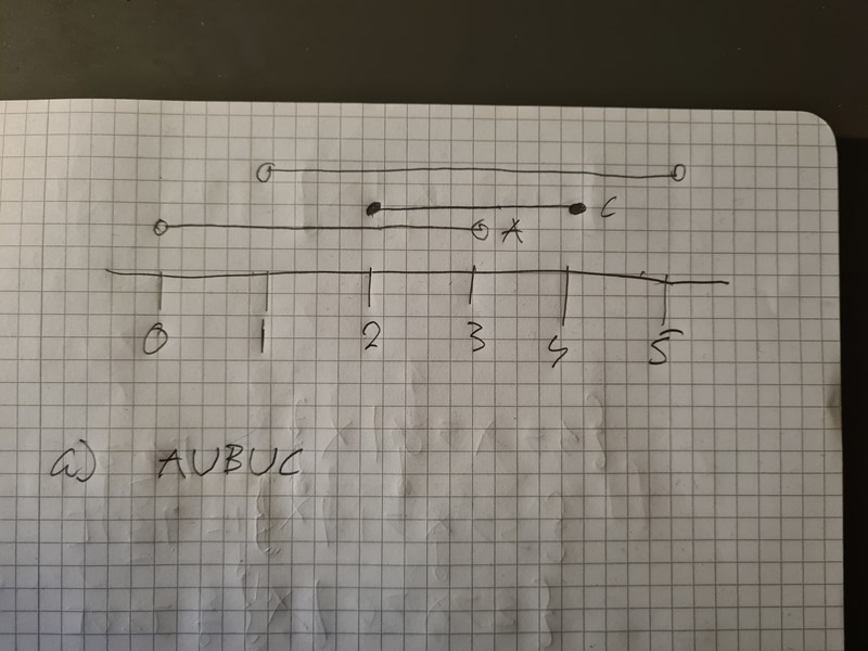 Nu kommer jag ej vidare. Jag vet ej hur man skall avläsa dessa intervall. Union är ju alla element som relevanta delmängder har, där dupletter exkluderas, men hur ska jag anpassa den lagen här? :/