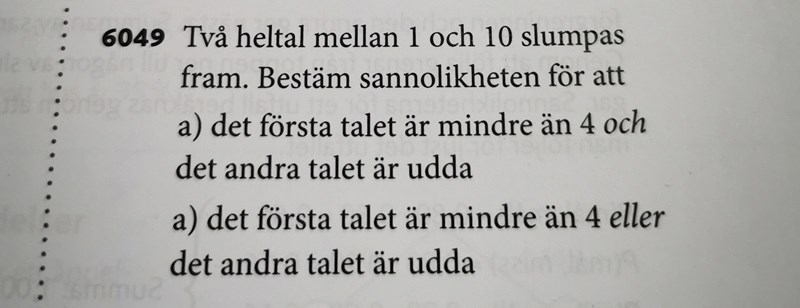 a) mindre än fyre: 3/10 och udda tal: 5/10