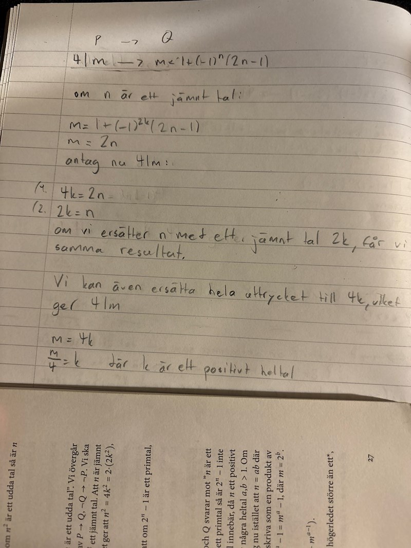 Visst jag förstår, var lite otydlig med det men m=4k var ett antagande för att kunna skriva ett direktbevis. Går det inte att bevisa utsagan med ett db?