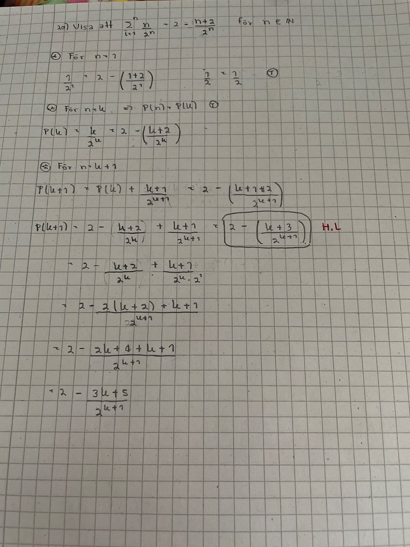 När du sätter på gemensamt bråkstreck glömmer du ändra tecknet på den sista termen "k+1". Annars räknar du rätt.