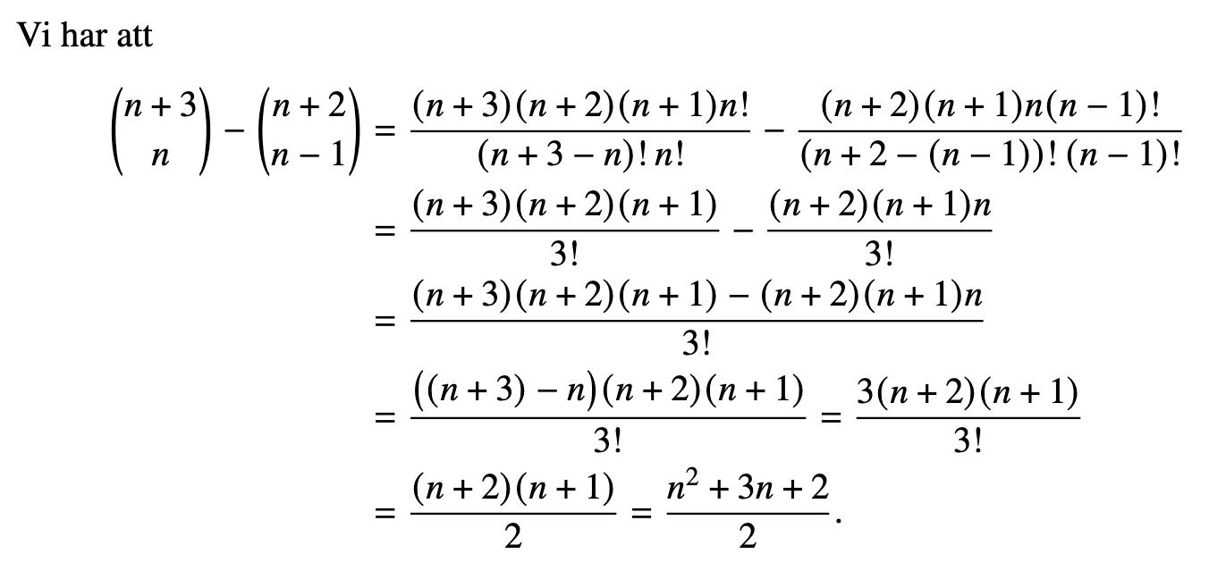 Jag fick svaret (n^2 + 3n + 2) / 2. Blir det rätt?