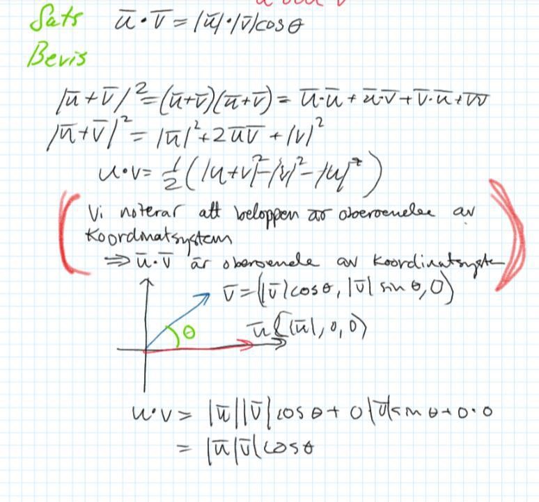 Hej min lärare skrev ner ett bevis för en sats men jag förstår inte vad han menar med det jag ringade in. Varför är det viktigt att bevisa att u*v=0.5(...) varför inte skriva in det i grafen direkt som läreren senare gjort?