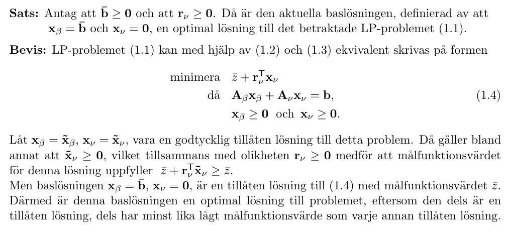 Och för en tillåten baslösning gäller ju att . Alltså är då.