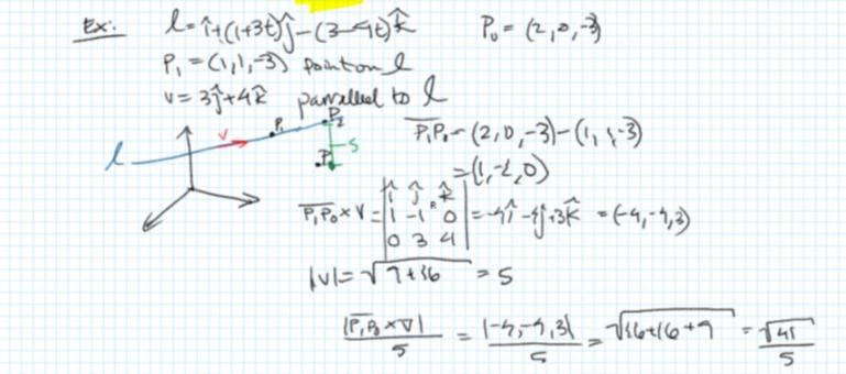 Nu hänger jag inte med. Exemplet du tar handlar om avståndet från en punkt till en linje. I ditt originalinlägg pratar man om avståndet från en punkt till ett plan.