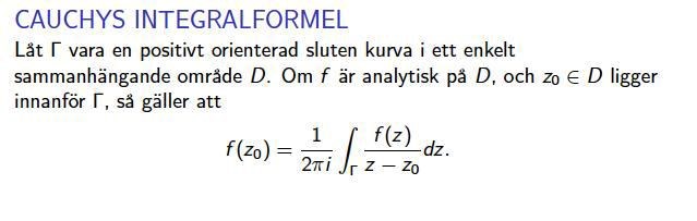 Funktionens värden inuti cirkelskivan bestäms helt och hållet av funktionens värden på cirkelskivans positivt orienterade rand ().