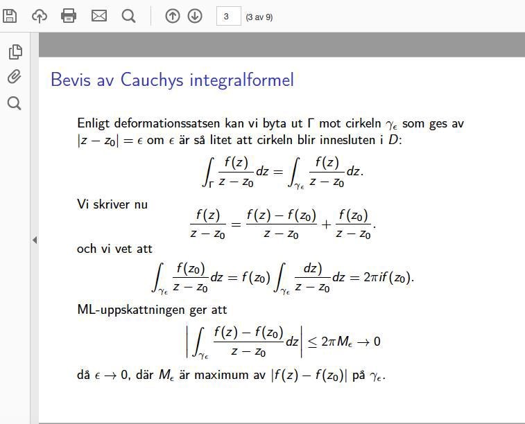 Bevis: Formulera och bevisa Cauchys integralformel.