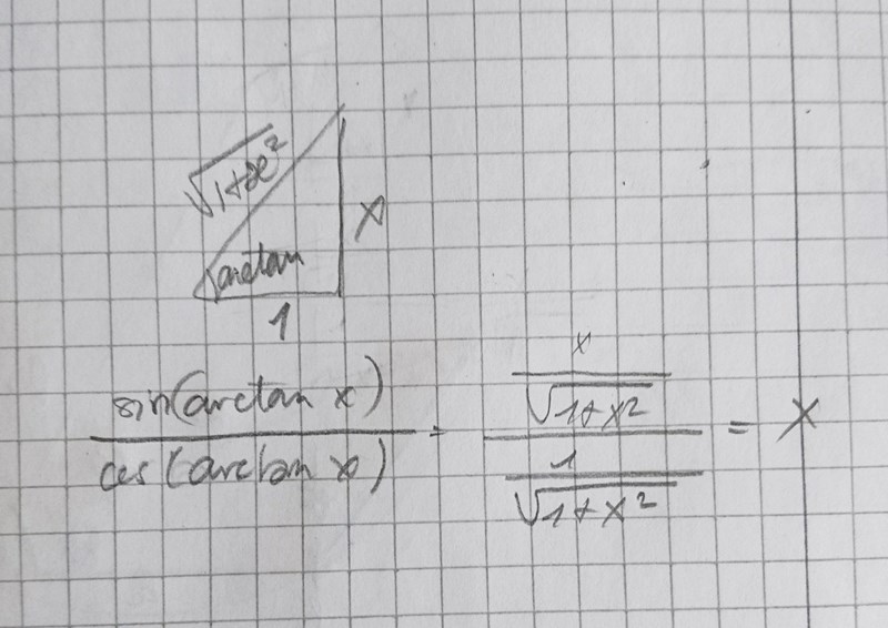 sin(arctan x)cos(arctan x)\displaystyle \frac{sin(arctan\ x)}{cos(arctan\ x)}