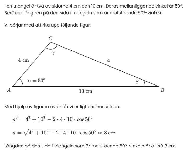 En annan fråga, om man ska lösa denna uppgifen, nu står ju redan svaret på den bilden jag skickar, men om man ska lösa en sån uppgift, behöver man kunna vad cos(50) tex är eller om man ska svara exakt får man alltid använda miniräknare då?