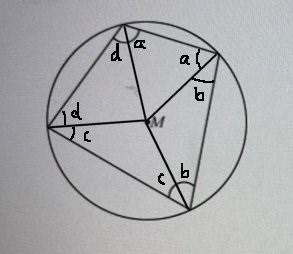 Motstående vinklar i fyrhörningen är då a+b+c+d (i båda fallen),