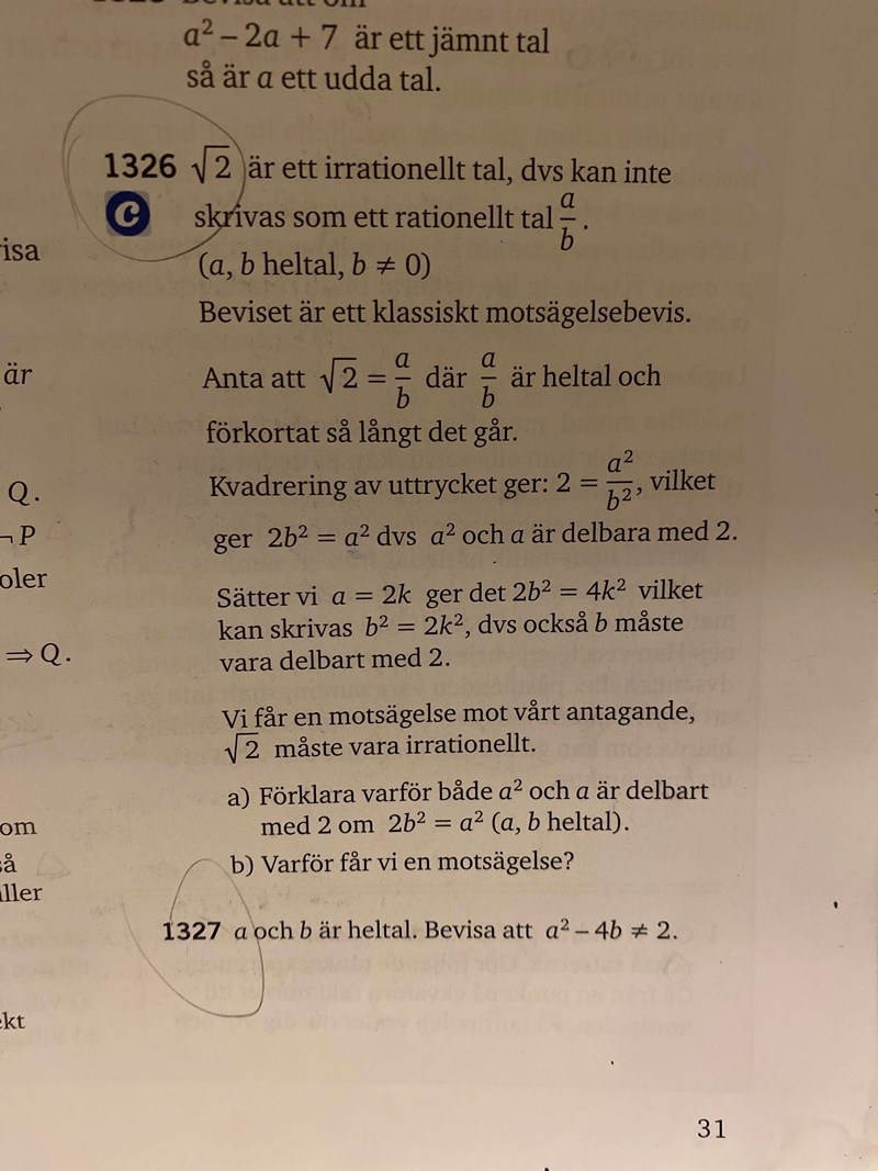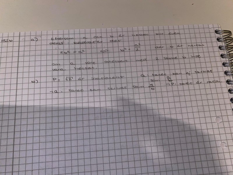 B-uppgiften står still i huvudet på mig. Jag vill göra det till ett indirekt bevis som sedan blir ett motsägelsebevis, men vet inte riktigt hur det ska gå till