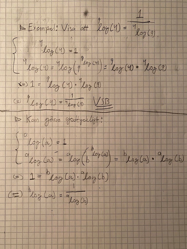 Sambandet är ju till synes logiskt men har fastnat i hur jag ska kommunicera beviset på ett bra sätt. Har gjort en lösning för exemplet samt även visat detta för godtyckliga baser a & b > 0. Bifogar min bevisföring här nedan - skulle verkligen uppskatta er input huruvida mitt bevis är "godkänt", eller om ni skulle bevisat detta på ett annorlunda sätt.