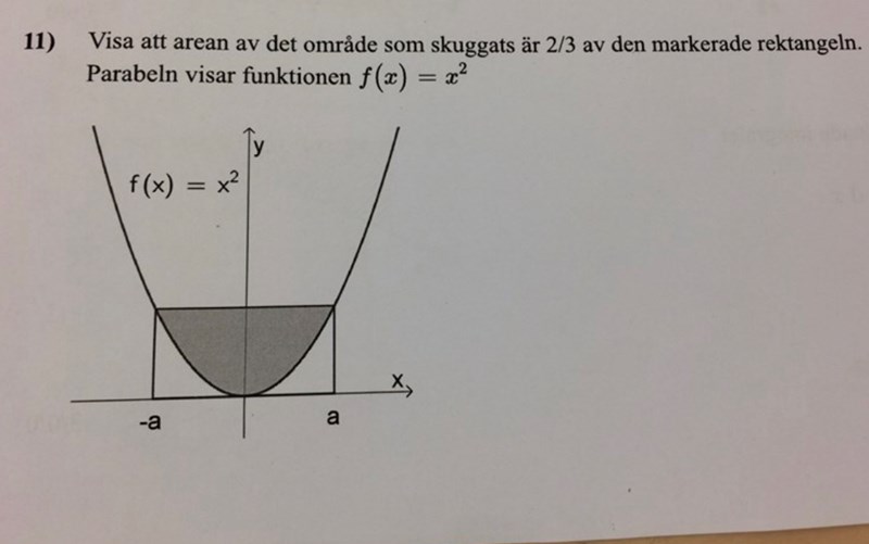 Smaragdalena skrev:Integralen från - a till a av integranden f(x) = x2 ger BARA den vita arean.