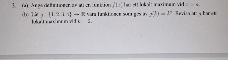 Obs man slarvar i (b) och kallar funktionen g ibland och f ibland. Man borde vara konsekvent och använt g eller f hela tiden. Men man fattar troligen vad som är tänkt.