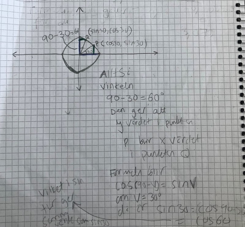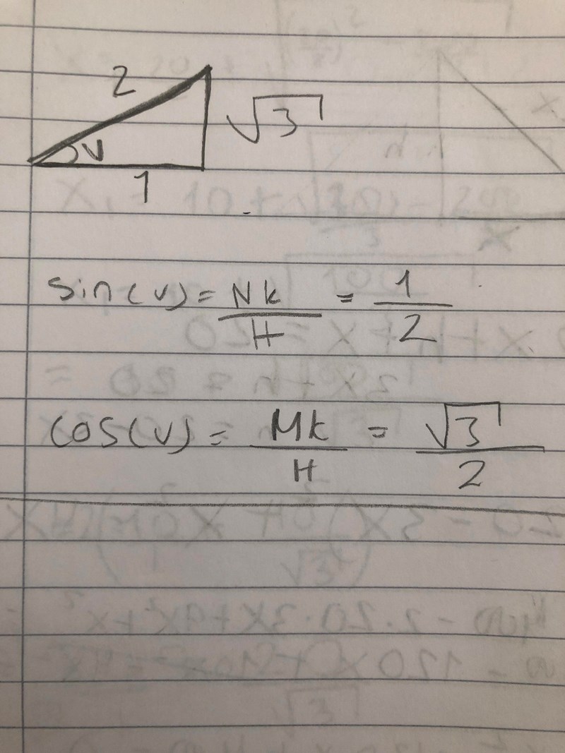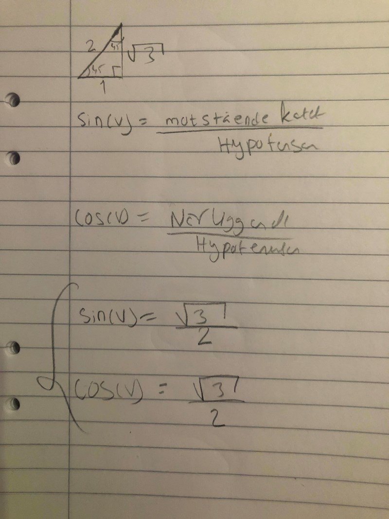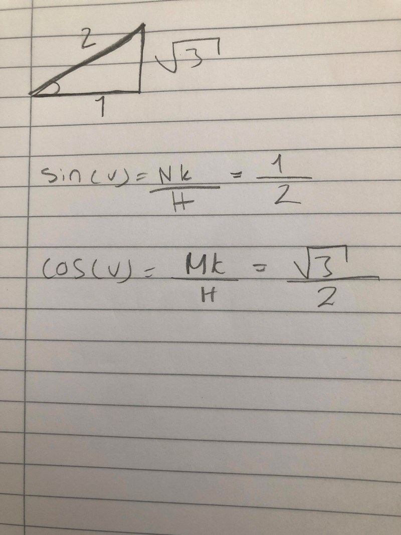 Definition av cosinus: vilket är för 60 grad och för 30 grad