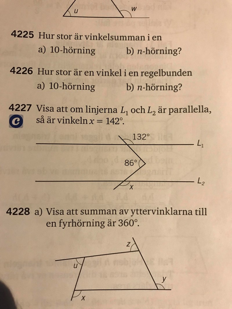 Laguna skrev:Om du ger dina vinklar namn och berättar hur du får deras värden i tur och ordning så kan vi avgöra var felet är. Även om du fick rätt svar skulle du inte få full poäng om du inte ger en uträkning som går att följa.