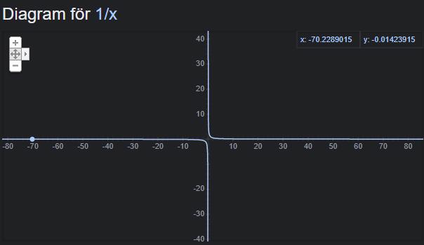 Du kan kolla från höger och vänster sida 0^+ och 0^- för att avgöra hur funktionen går mot oändligenheten då x går mot 0