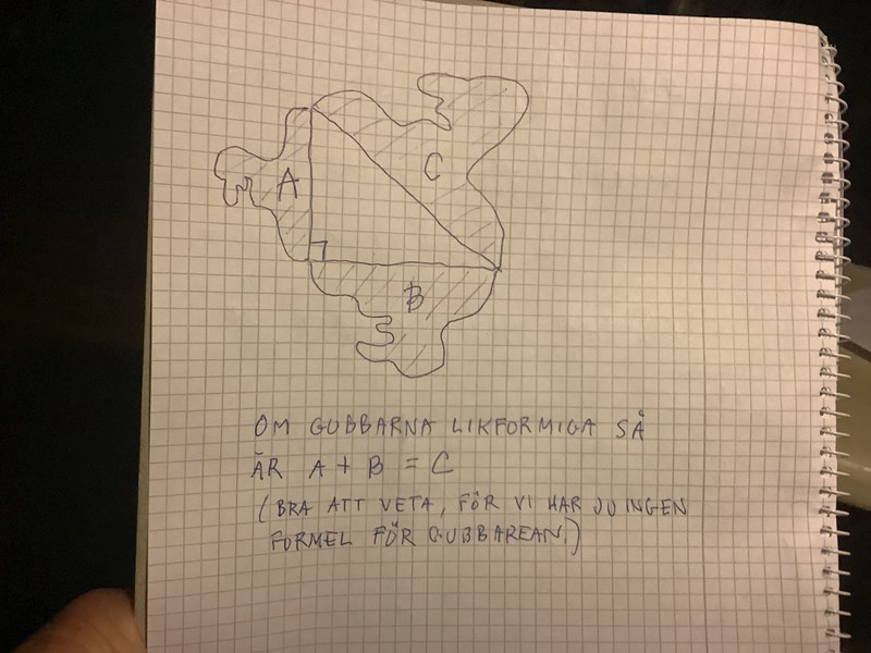 Detta kan generaliseras. Du kan lägga tre likformiga figurer, vilka som helst, längs sidorna och du får att figurernas areor förhåller sig som x2 : y2 : z2 eftersom areaskalan är längdskalan i kvadrat. Så för något c kommer c(x2+y2) vara lika med cz2. Bifogar bild strax.