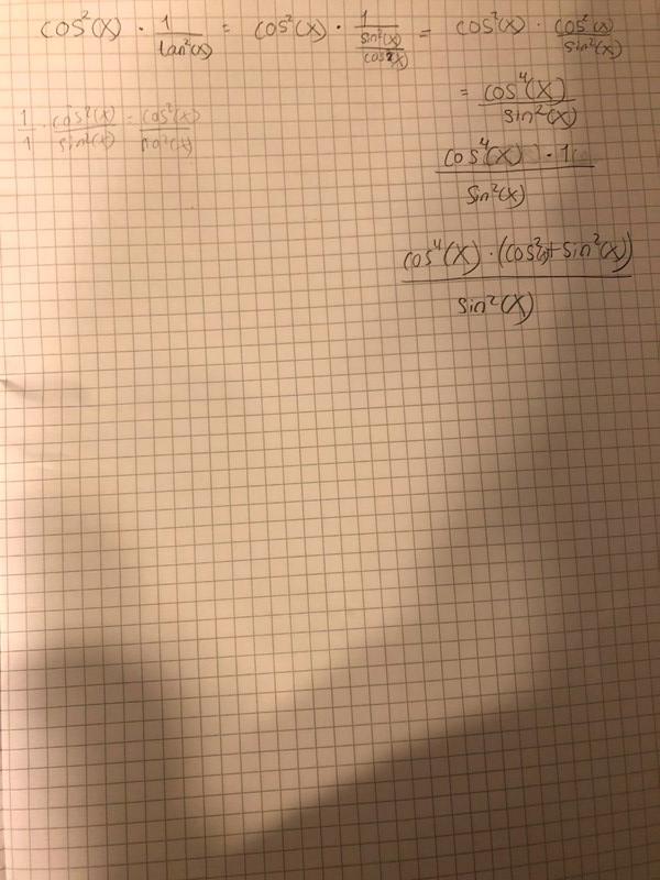 (1)/(tan2x) - (sin2(x))/(sin2(x)/cos2(x))