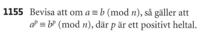 Bevisa hur a^p är kongruent med b^p (mod n) om a är kongruent med b (mod n)