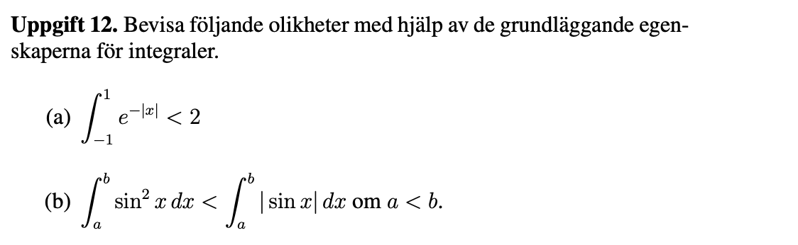 Om man nu vet att den ena integranden (d.v.s. ) är mindre än den andra integranden (d.v.s. ), så är den första integralen mindre än den andra integralen.