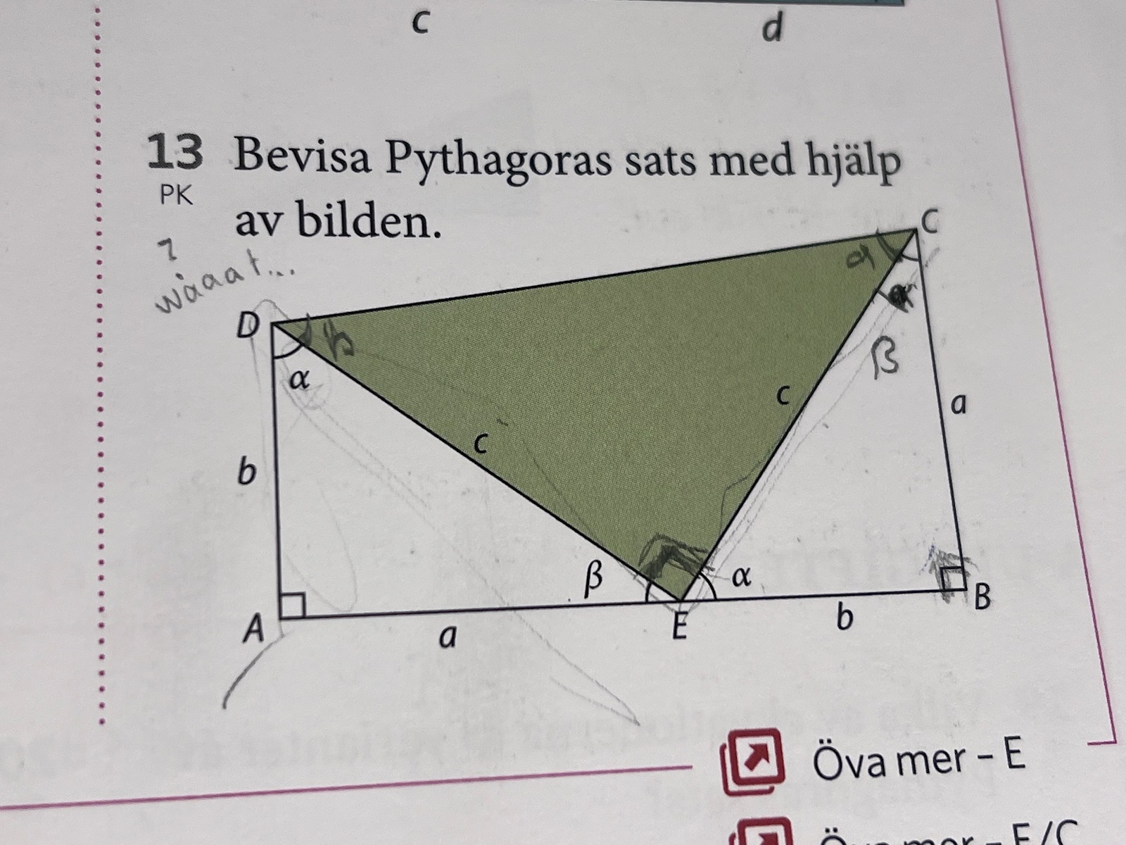 Tanken är nog att försöka uttrycka arean av fyrhörningen på två olika sätt.