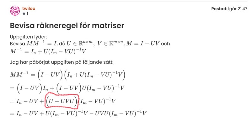 Bevisa räkneregel för matriser