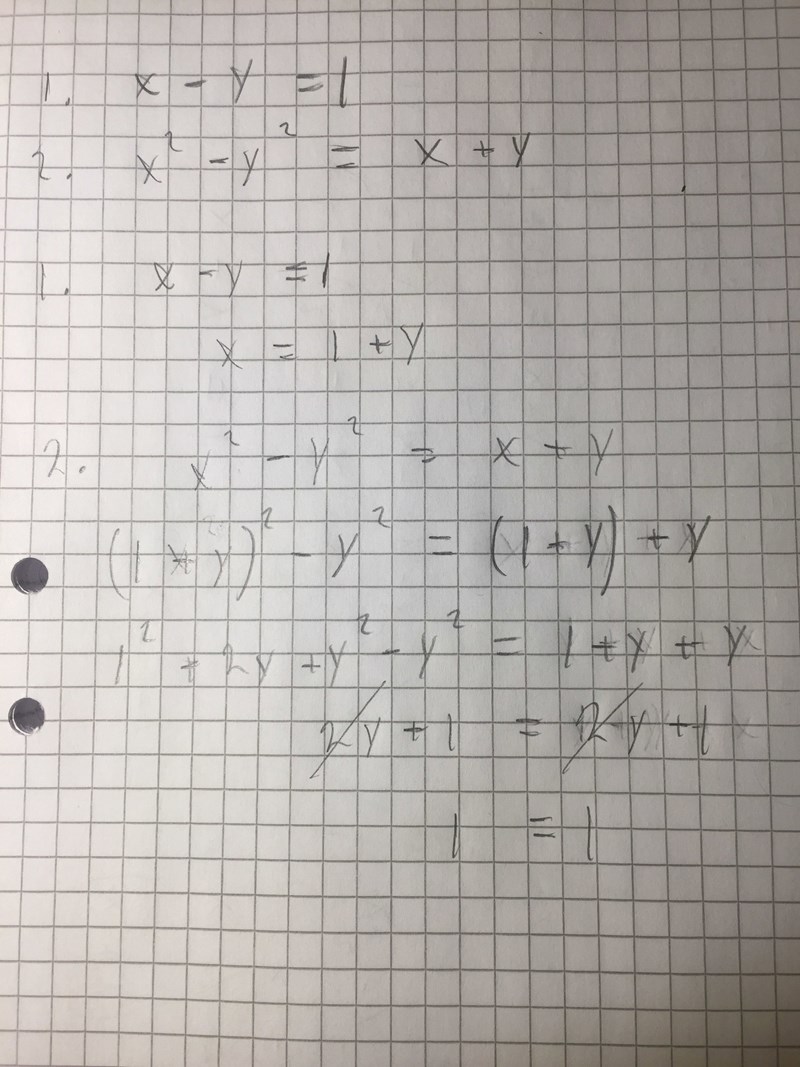 x2 - y2 = (1 + y)2 - y2 = 1 + 2y + y2 - y2 = 1 + 2y = (x - y) + 2y = x + y