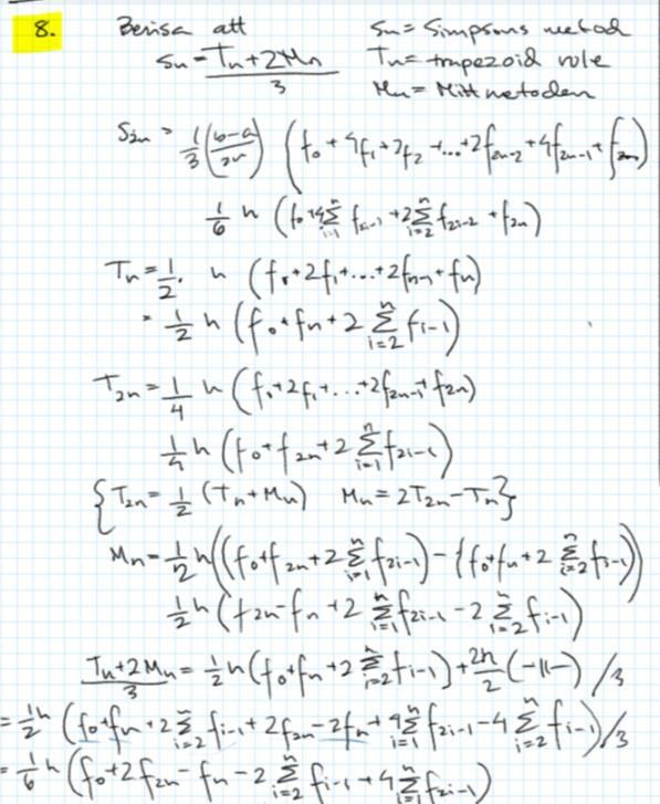 Bevisa uträkning med simpsons metod, trapezoid rule och mittmetoden