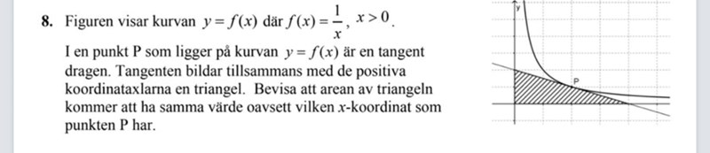 Om den inte gör det så har du visat att arean har samma värde oavsett var tangeringspunkten P befinner sig.
