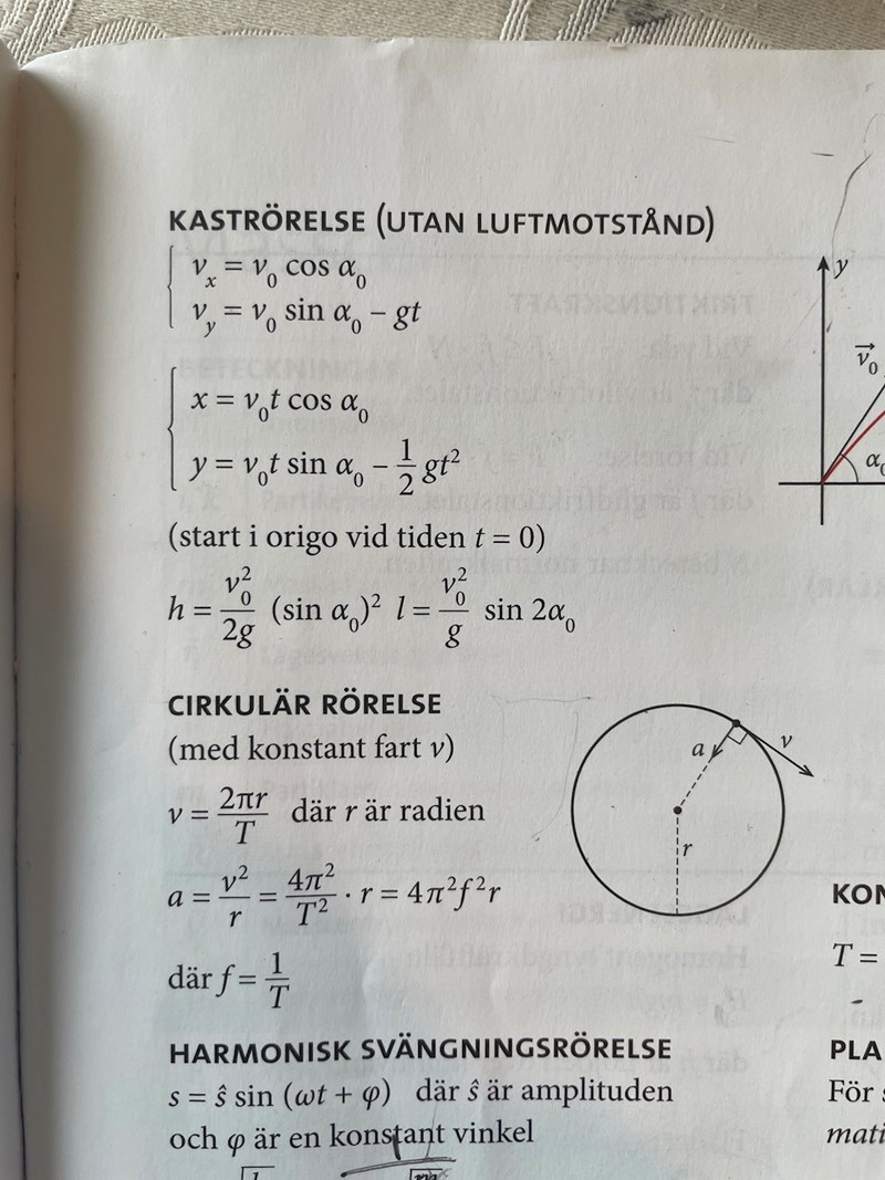 - , där är startposition, är utgångshastighet i y-led, är accelerationen I y-led och är tiden.