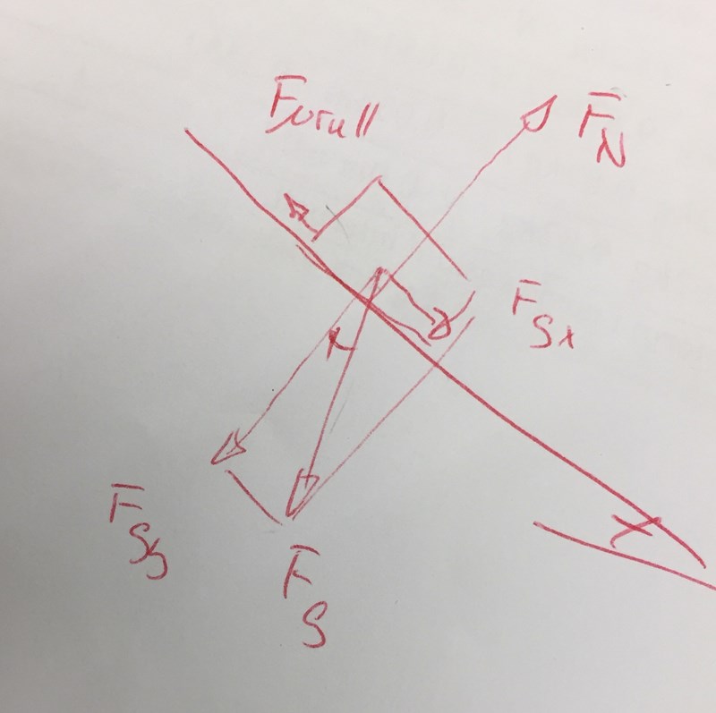 fg och fd är givna.  fgx är bara komposanten till fg, borde  fd + fgx = kraften nedåt?