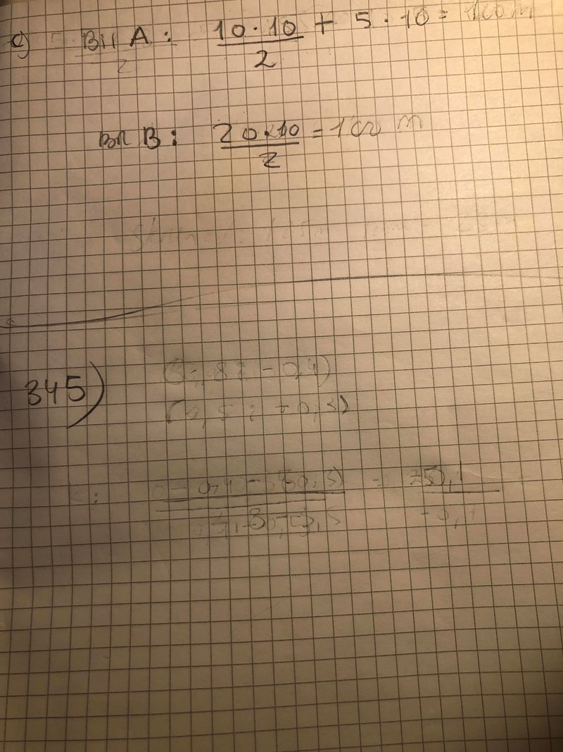 Arean för B är en triangel med basen 10 s och höjden 20 m/s. Hur stor area har triangeln?