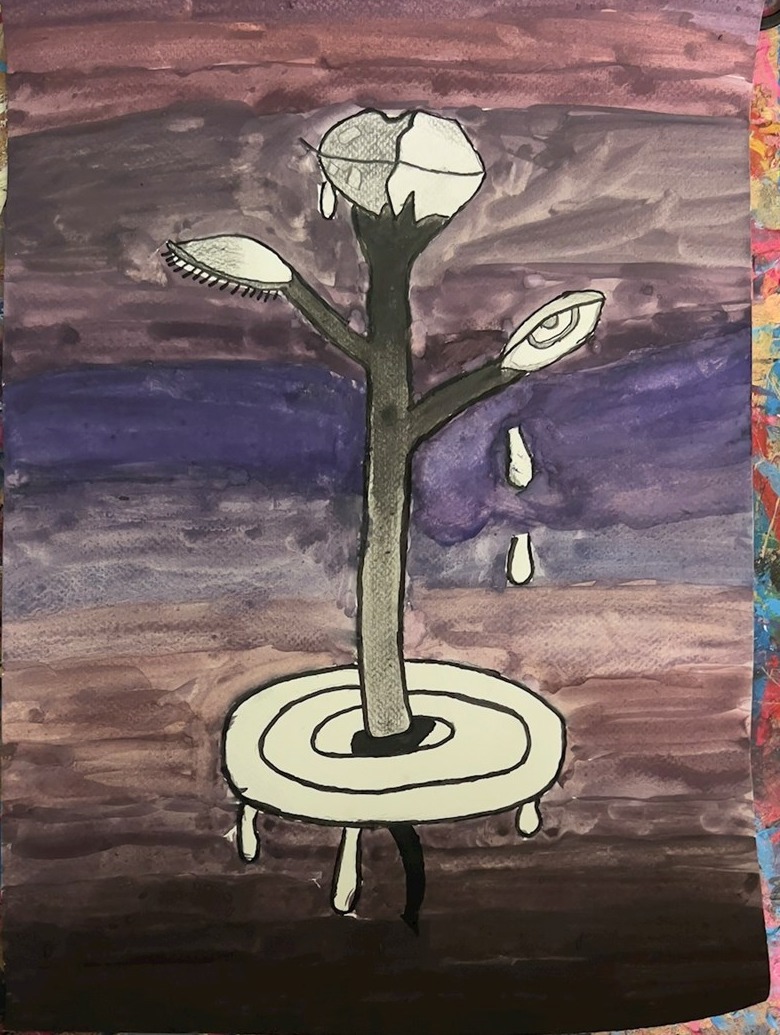 Processen, har jag använt mig av akryl färg för att göra bilden och inspiration från internet. Jag var också medveten att jag behövde använda min egen fantasi och blanda med verklighet för att få den mer personlig. Sedan har jag försökt att få med två sidor av verkligheten det vill säga att jag behövt att skärma av bilden men jag har varit noga att inte dela den i mitten.