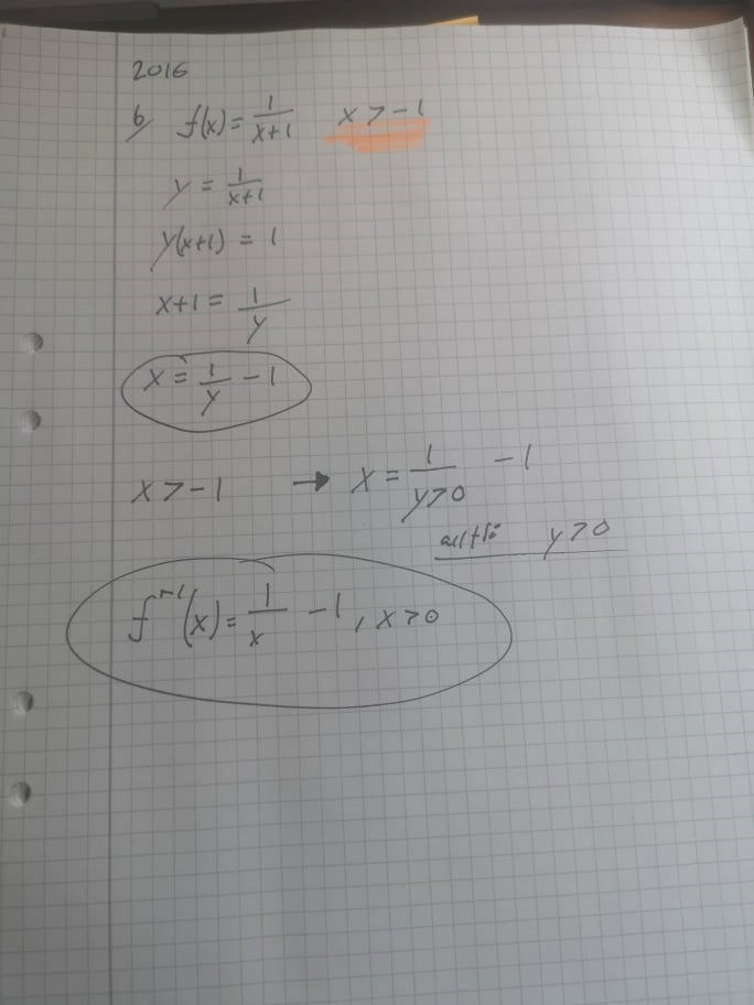 Att y>0 beror på att x>-1 sen byter man variablerna. Är detta korrekt tänkt?