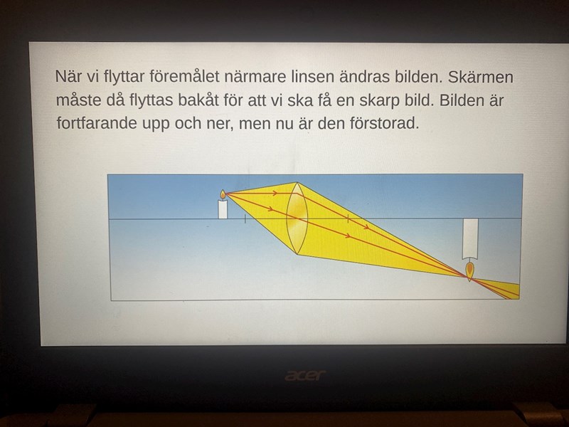 På den första bilden uppkommer bilden av ljuset där ljusstrålarna möts. Är det alltid såhär? Jag ser på bilden att den är förminskad men förstår inte varför. Är det på samma sätt som när ljusstrålarna korsas vid en konkav spegel?