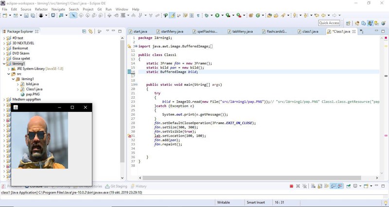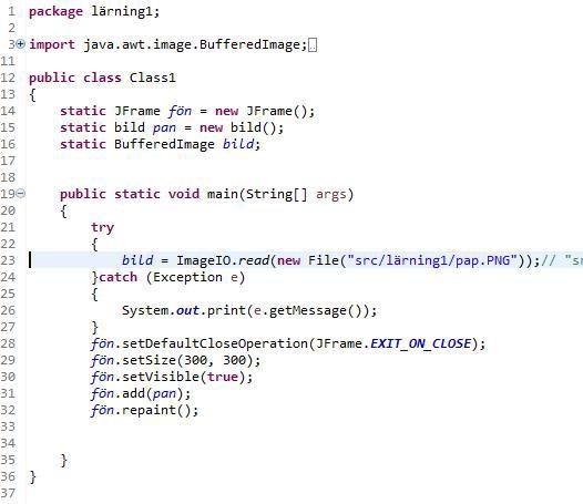 Jag har försökt att lösa den genom att byta ut den med tex koden: Class1.class.getResource("pap.PNG");