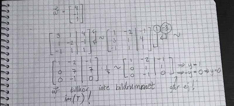 En vektor ligger i bildrummet om vektorn kan uttryckas som en linjärkombination av transformationens kolonnvektorer.