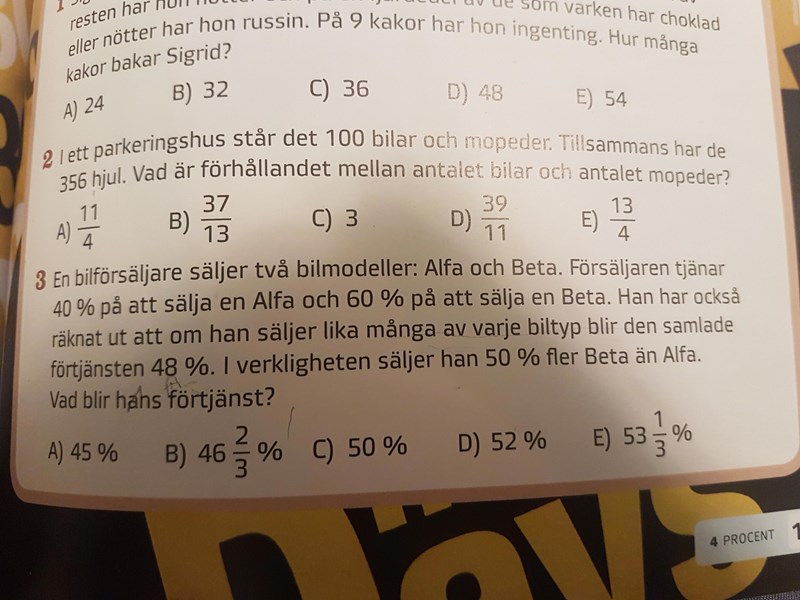 För det första kan man väl lösa detta utan att veta om den samlade förtjänsten av 48%?