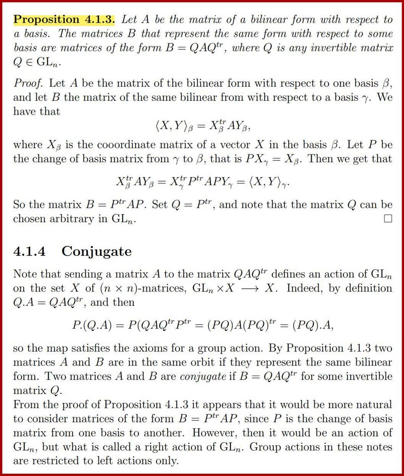 Bilinjära former: gruppverkan GLn på R^nxn via basbytesmatriser
