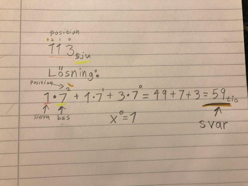 Uppgift: Talet 113 är skrivet i bas 7. Skriv talet i bas 10.