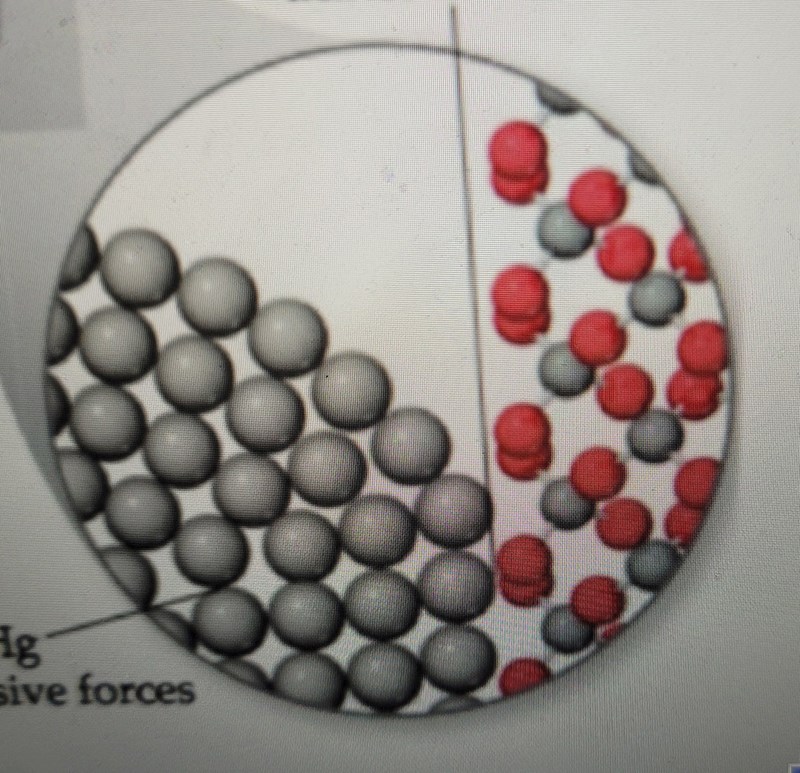 till vänster är det kvicksilvermolekyl mellan kvicksilvermolekyl dvs metallbinding. Sen till höger är det kiseldioxid och som möter kvicksilver där strecket går.