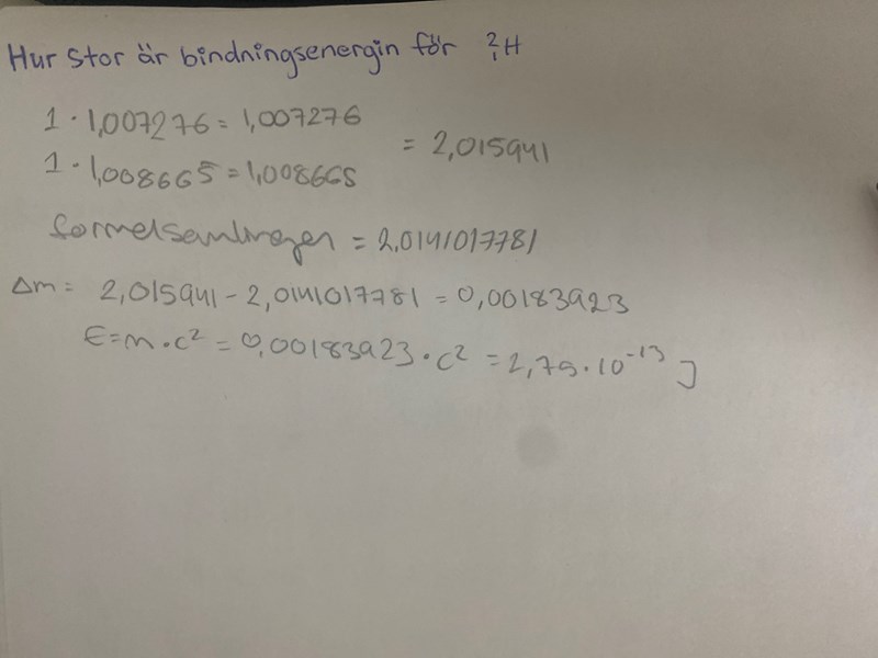 Jag tror att det värde du hämtade från formelsamlingen är för den neutrala nukliden, dvs den innehåller även en elektron.