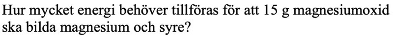 Har fastnat på denna uppgift och vet inte riktigt hur jag ska gå tillväga. Har slagit upp bindningsentalpi för MgO som är -602kJ/mol.