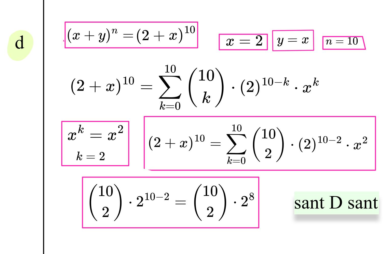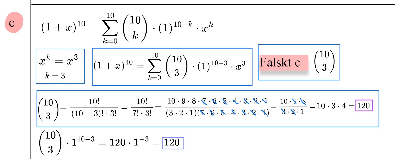 För D gör jag samma sätt bara att x=2 och att värdet som söker är x2 istället för x7 eller x3 som i (1+x) i a,b,c