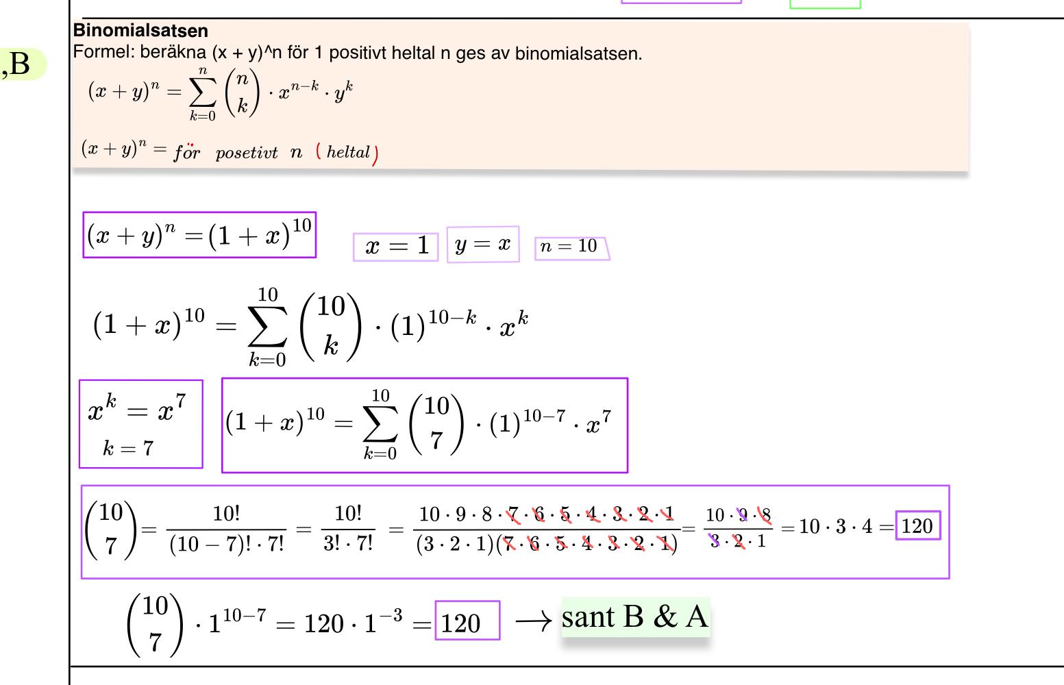 A just det så då borde alla stämma för det blir väl att d stämmer pga sambandet (nk)=nn-k