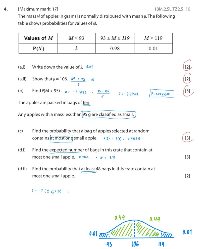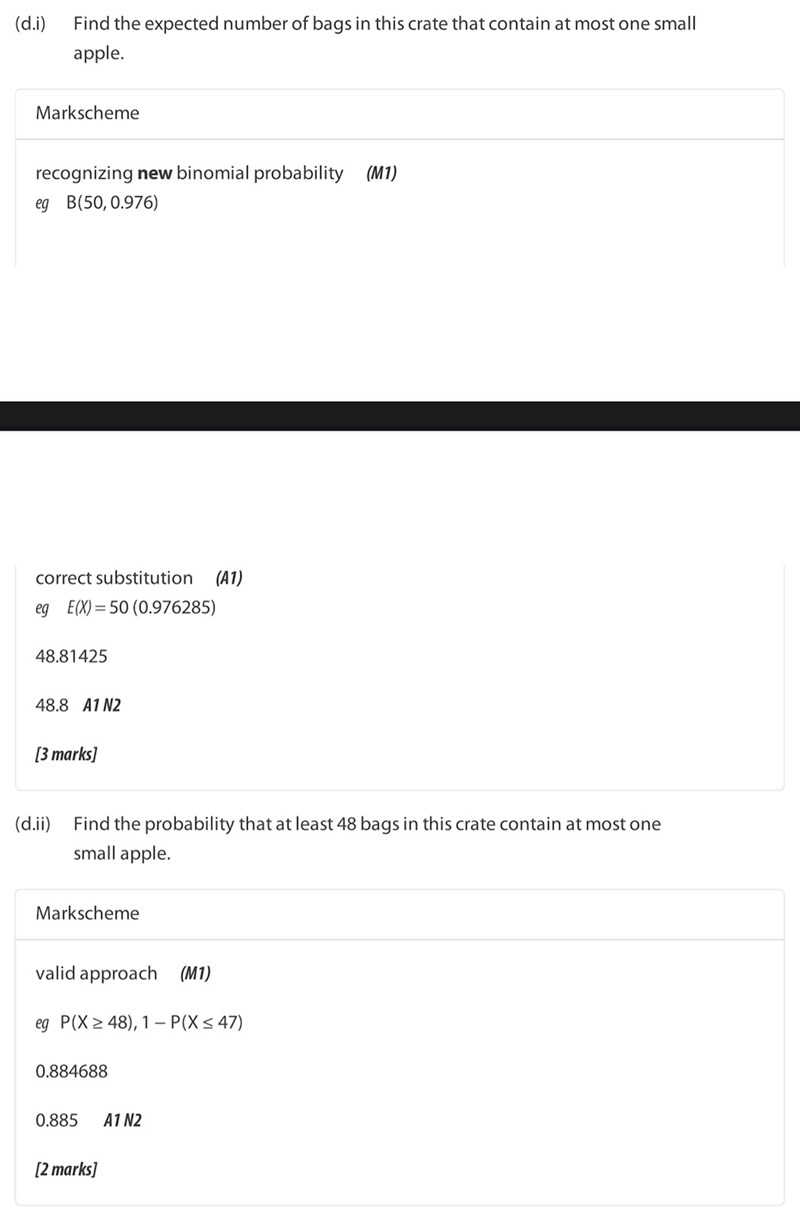 Jag har kört fast i d)i) och ii)eller jag trodde jag gjorde rätt tills jag insåg att i facit använder dem 50 äpplen istället för 10, var fick dem det ifrån?